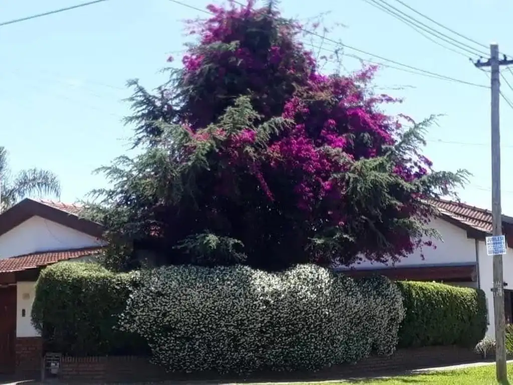 SE VENDE CHALET 5 AMBIENTES EN ESQUINA, SALIDA A DOS CALLES, COCHERA PARA 2 O 3 AUTOS, PORTON AUTOMATICO, PATIO, JARDIN. EN INGRESO LIVING CON PISO EN MADERA NATURAL, COMEDOR DIARIO, COCINA INTEGRADA CON LACENA Y BAJO MESADA COMPLETA, 3 DORMITORIOS, 2 BAÑOS, UNO CON HIDROMASAJE (CAÑERIAS Y TERMOTANQUE NUEVOS), PATIO CON PARRILLA, MESADA Y MUEBLES, 2 JARDINES CON RIEGO SUBTERRANEO.