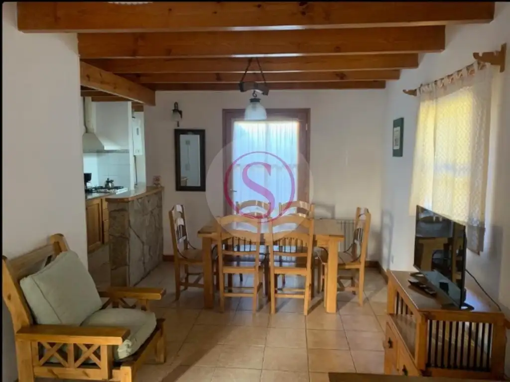 En planta baja cuentan con un toilette, living con sofá cama (2 camas individuales), TV, comedor, cocina completa con horno, horno microondas, heladera, vajilla completa para 6 personas y utensilios necesarios para la cocina; lavadero; y un patio individual con parrilla propia de la unidad