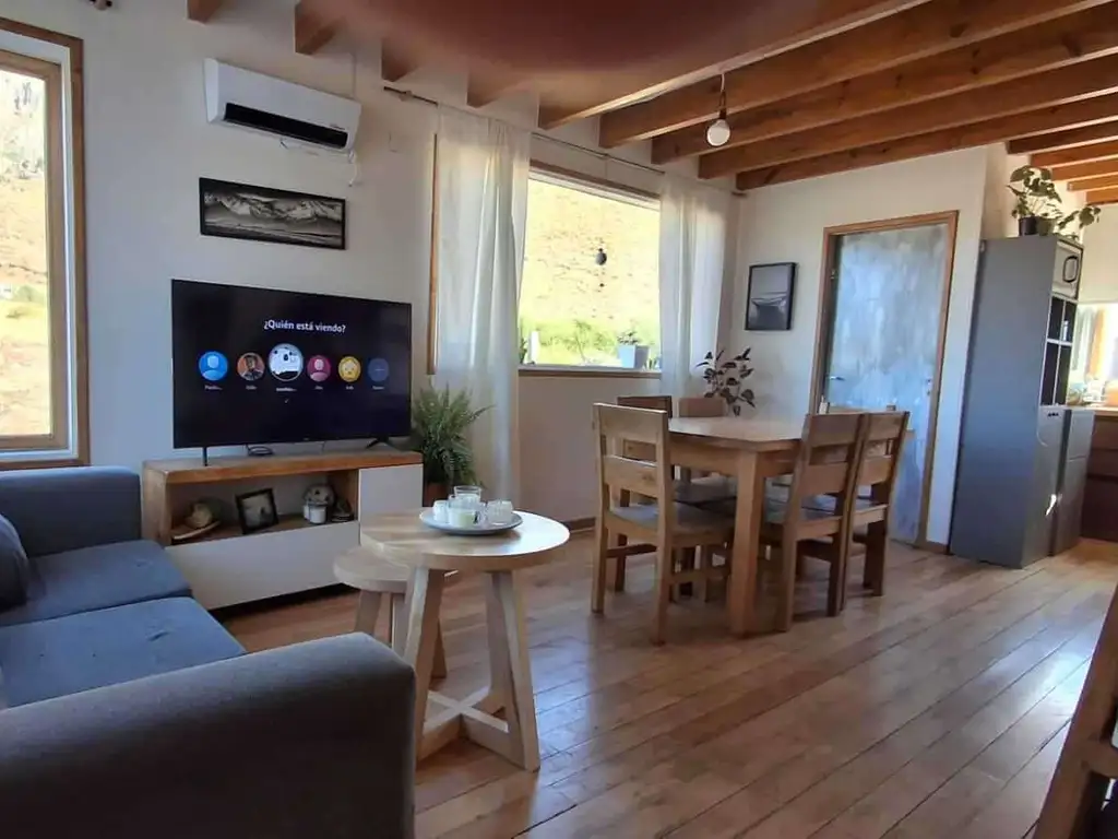 Dos cabañas de aproximadamente 60 m² cada una, distribuidas en dos niveles. En la planta baja, se encuentra un living comedor con cocina integrada y un baño completo, en la planta alta hay dos dormitorios. Además, hay dos cabañas de 40 m² cada una, que cuentan con un diseño similar, en la planta baja living comedor y cocina, y la planta alta un dormitorio que balconea sobre el living.
