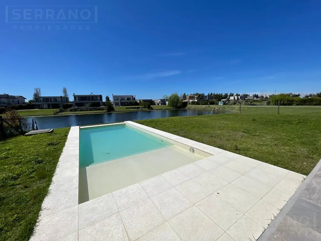 En el área de habitaciones, la suite principal incluye baño privado, vestidor y vista a la laguna, mientras que los dos dormitorios adicionales poseen placares completos y comparten un baño con bañera.