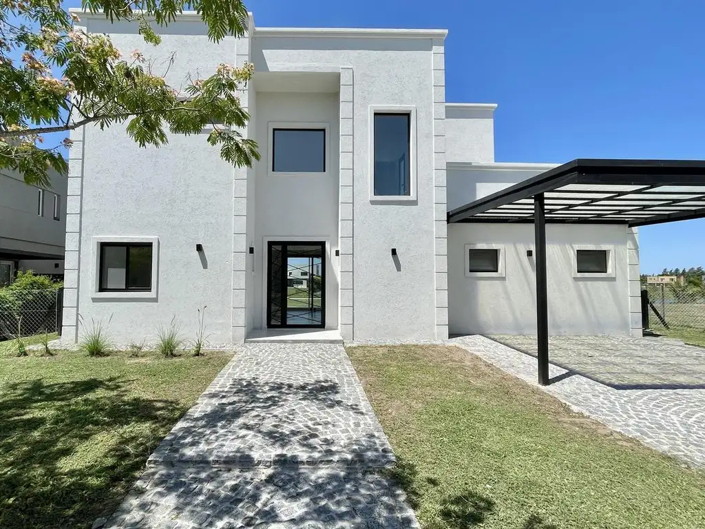 La casa de 241 m2, construida sobre un lote de 984 m2 con orientación noreste en Area 1, fue desarrollada con un concepto semi integrado en todos los ambientes, con dobles circulaciones en su living comedor y cocina, con la idea de aprovechar la vista al lago desde todos los ambientes. Se utilizaron terminaciones de primera calidad, como lo son los pisos de porcellanato y también los sócalos, aberturas A30, mesada de la cocina de marmol tipo Silestone, bajo mesadas alacenas interiores de placar frentes de placard y vestidores de melamina, griferias y sanitarios linea FV, y losa radiante en todos los ambientes alimentados por una caldera dual.