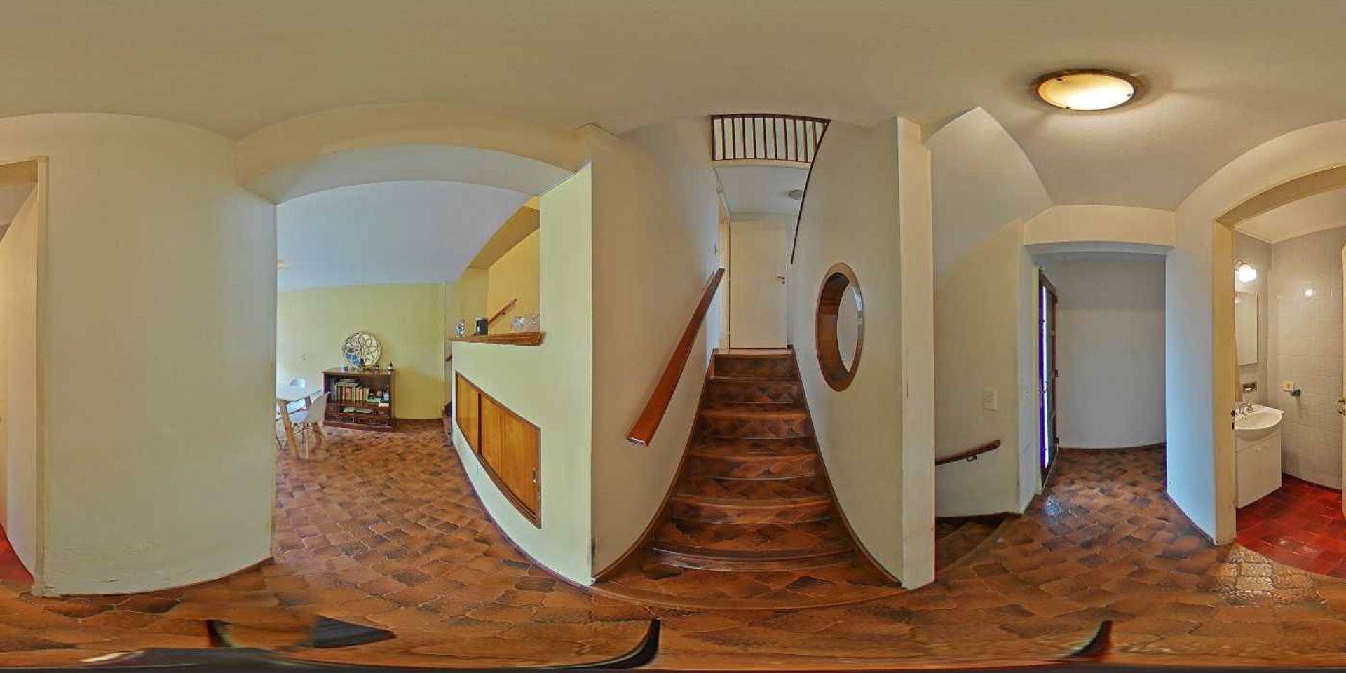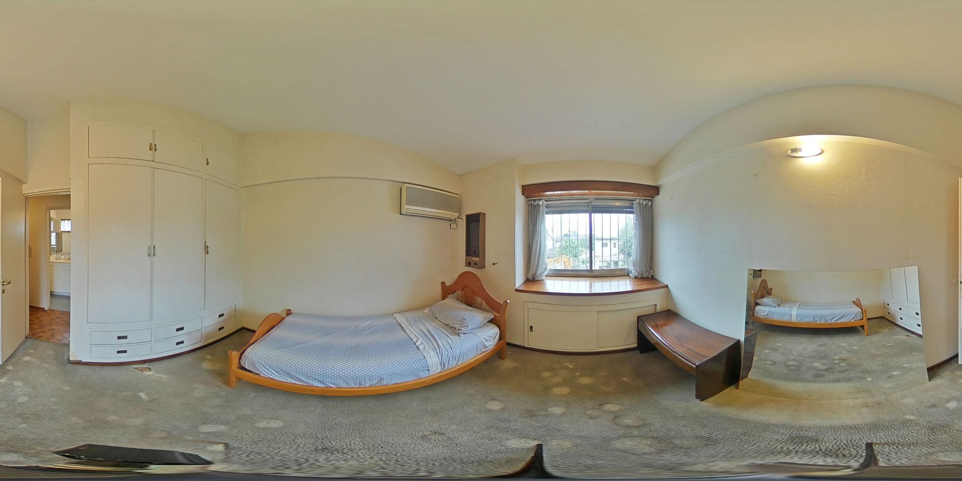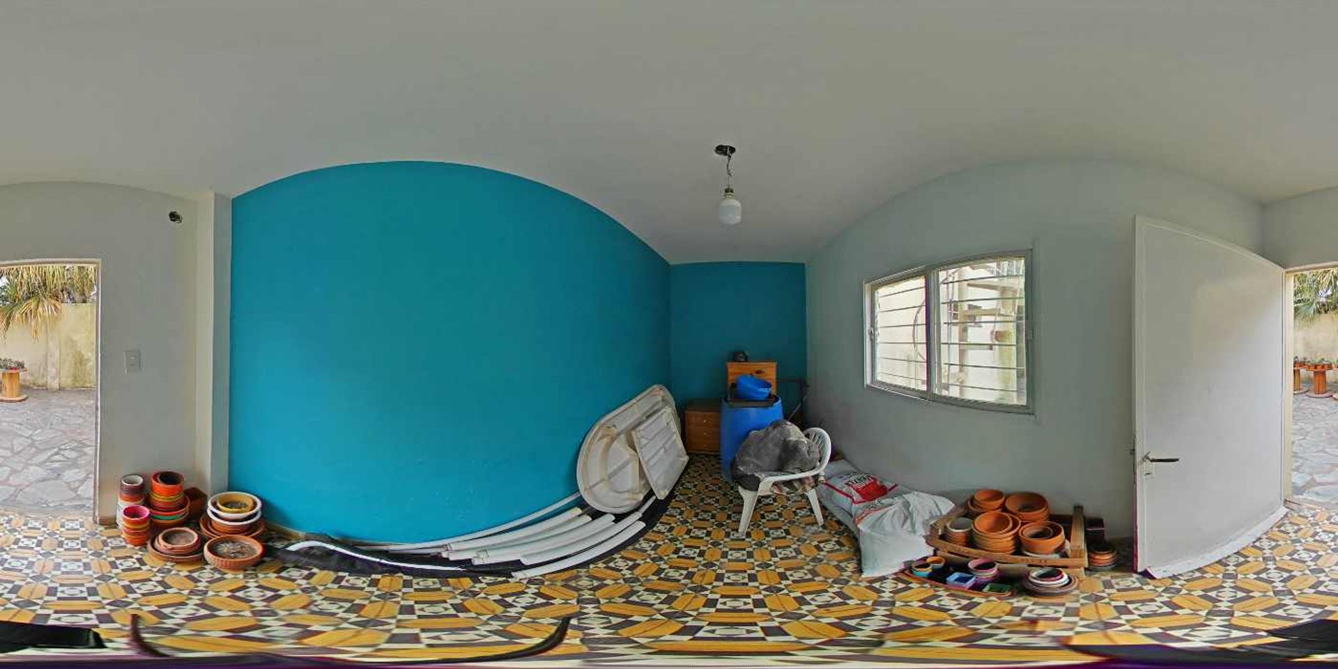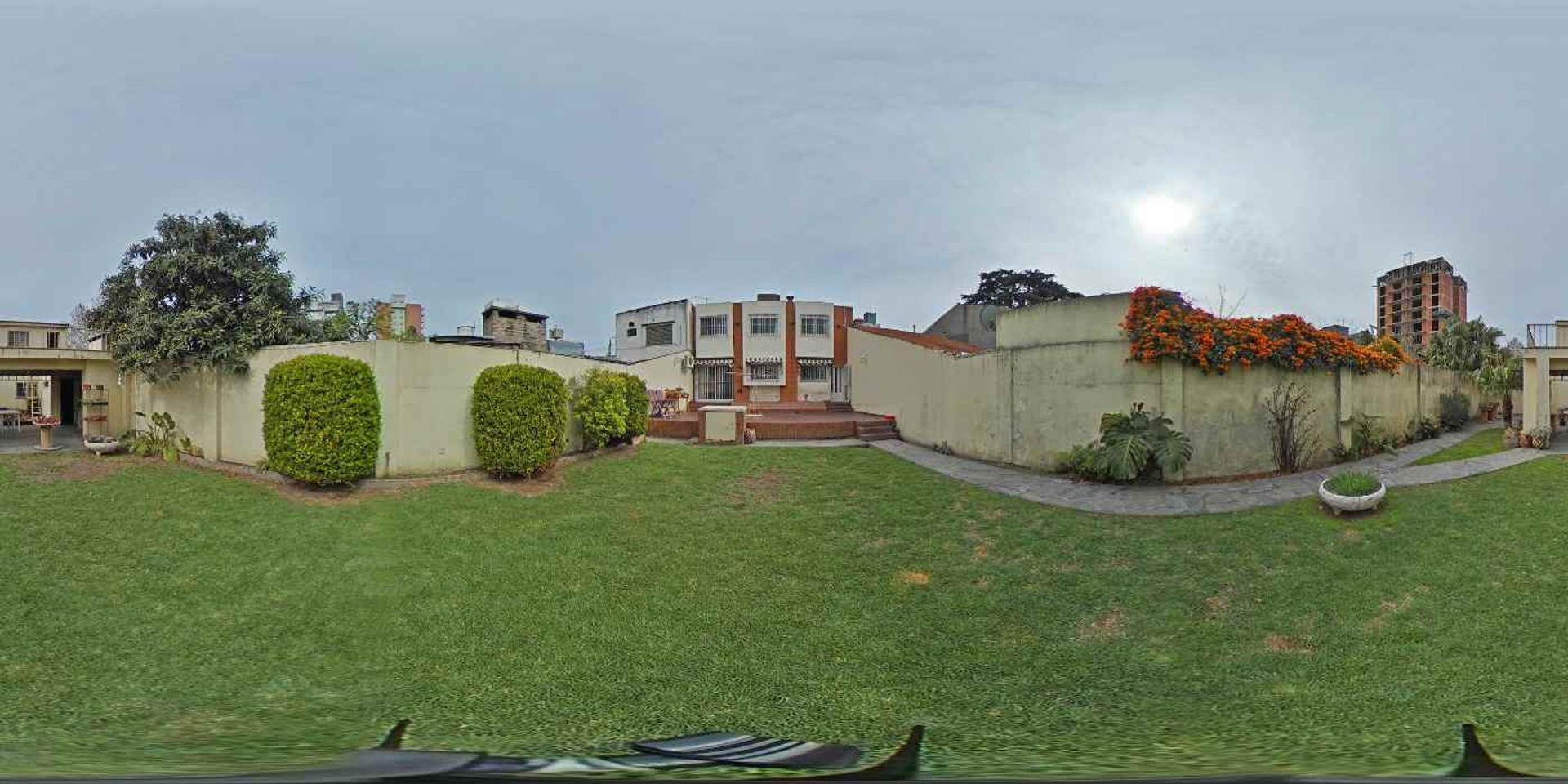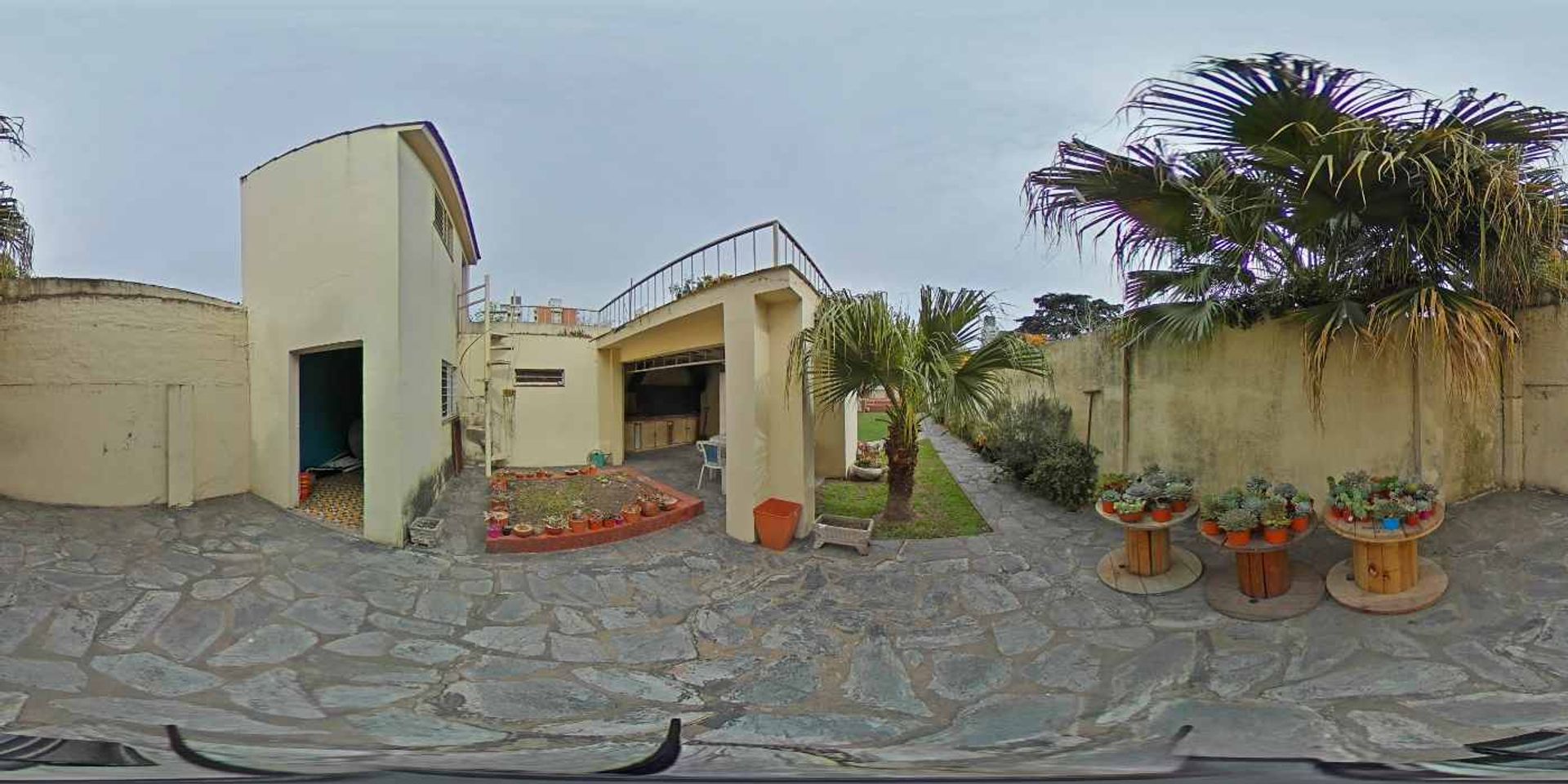 Luego, a través de un gran parque con excelente luz natural durante todo el día, encontramos al acercanos al fondo del lote, un sector de parrilla con quincho semicubierto, un baño, y dos habitaciones (una en planta baja de 4 x 1,90 metros aprox, y otra en planta alta de las mismas medidas)