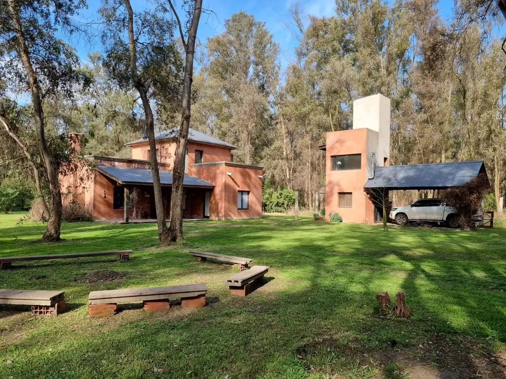 Espectacular casa estilo colonial construida en 1 de los 2 lotes en el barrio de 5 Montes a 2,5km de la laguna de Monte y 5 km del pueblo. Cuenta con doble galería techada.