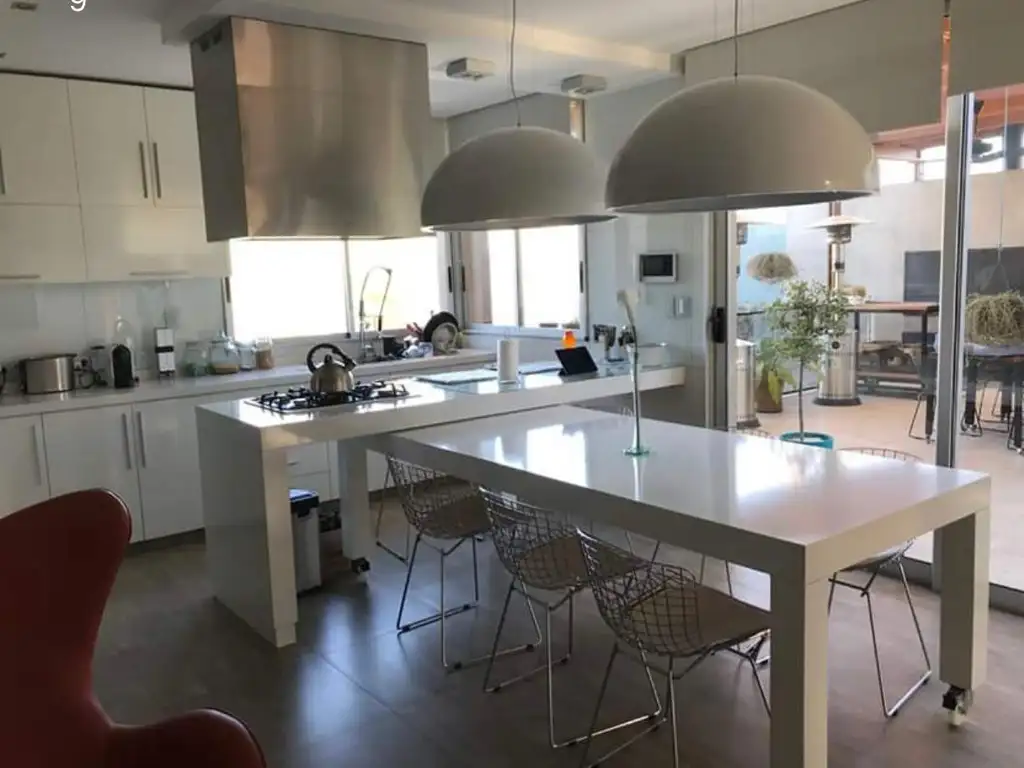 Al ingresar, se destaca un amplio y luminoso espacio social integrado, donde se combinan living, comedor y cocina, con mobiliario a medida, isla central y equipamiento de primer nivel. Grandes ventanales aportan luz natural y conectan el interior con el sector exterior.