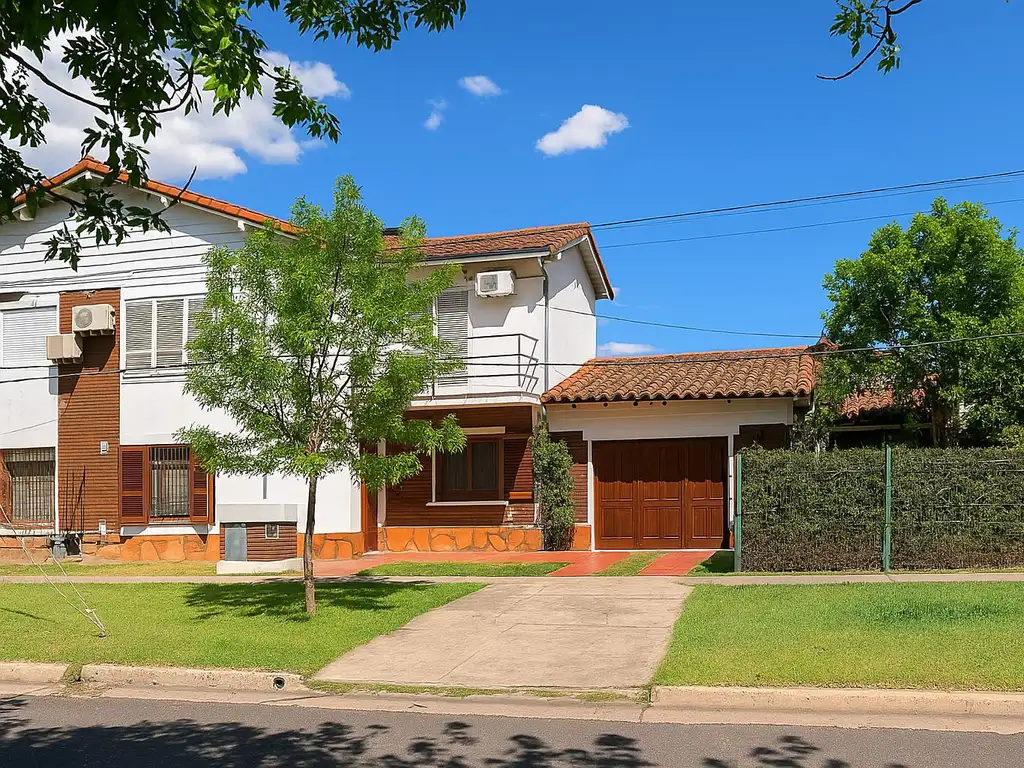 Living, comedor con leño a gas, cocina completa, baño de visitas, escritorio y/o dormitorio con placard y baulera, cuarto para uso de guardado, garaje para dos autos, jardín y salon comercial con baño y deposito independiente a la propiedad.