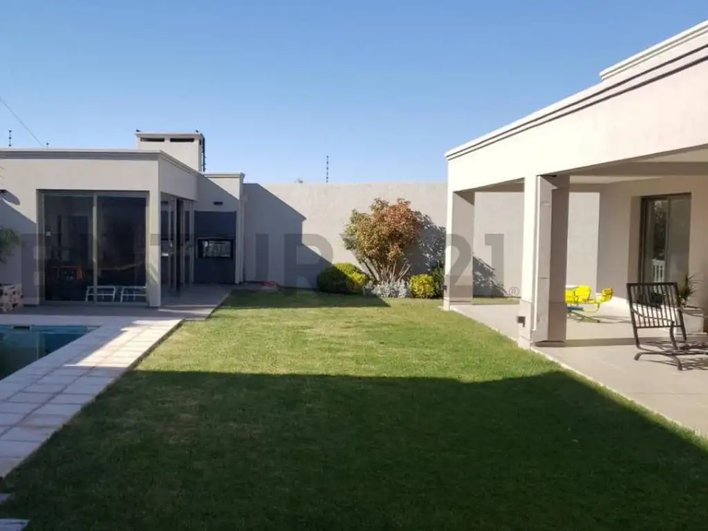 Con una superficie total de 806.91 metros cuadrados, en una sola planta, esta propiedad cuenta con 4 ambientes distribuidos, en su hall de ingreso nos dirigimos a un amplio y luminoso living Cocina con su respectivo amoblamiento de primera calidad, 3 habitaciones con placares empotrados, 1 de ellas en suite con vestidor y bañera, 2 baños completos, lavandería. Espacio de guardado y cochera doble, medianeras de material, cerco eléctrico en todo su perímetro.Cámaras, alarma, aberturas de aluminio con DVH. Pisos de porcelanato, 2 aires acondicionados, 6 calefactoresFrente con rejas y en su exterior observamos galerías que conectan a distintas áreas de la casa, un jardín totalmente parquizado, con riego automatizado, la piscina (6x3) cerrada, quincho con baño, parrilla y hornoLos servicios: agua, energía eléctrica trifásica, gas natural y cloacasDiseñada con una excelente distribución funcional en toda su dimensión. Ideal para aquellos que desean disfrutar de la tranquilidad de la zona sin alejarse de la ciudad. No dejes pasar la oportunidad de adquirir esta increíble propiedad.