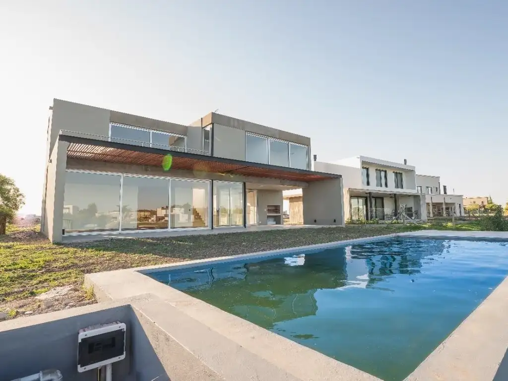 Suite con vestidor y 2 dormitorios + baño completo.cocina a gaspiso flotante de madera.parrillapiscina. calefacción por radiadores con caldera dual Peisa. aberturas aluminio doble vidrio.perfileria metalica en pergola.