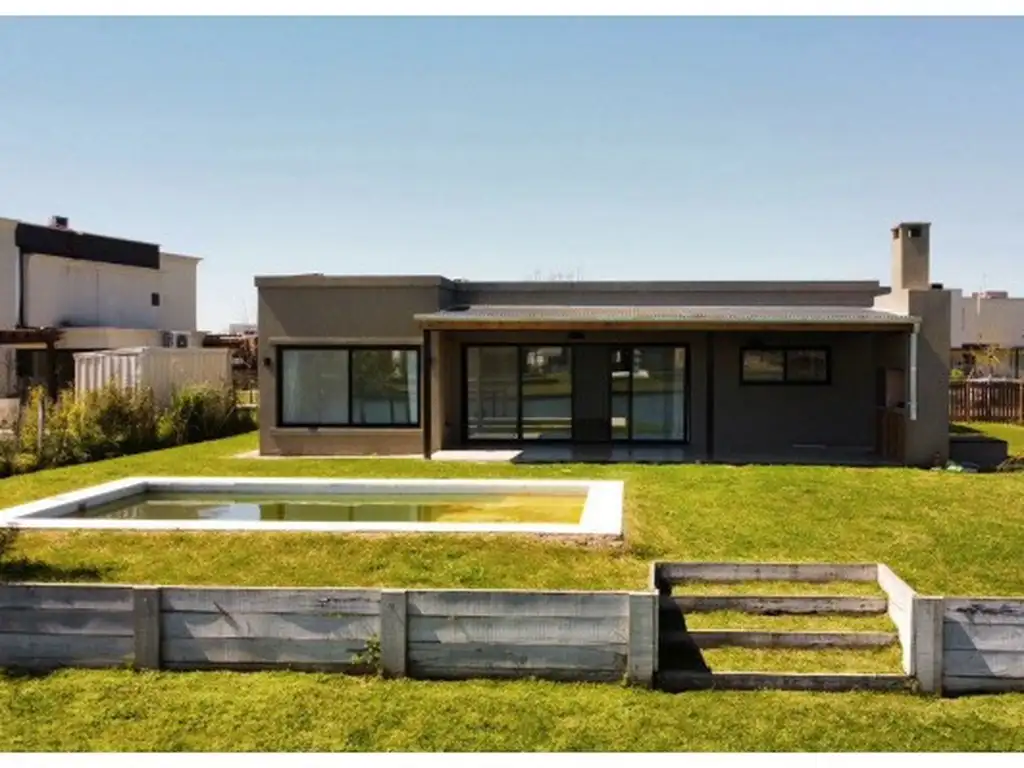 Parrila con amplia galería, Piscina con borde infinito con una espectacular vista a la laguna. Muelle y Pérgola.