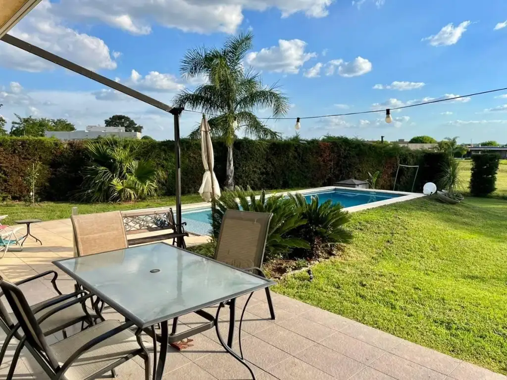 La pileta esta revestida, con playa humeda y luces. El jardin esta parquizado y posee riego por aspercion, y tiene un cerco vivo de pinos.