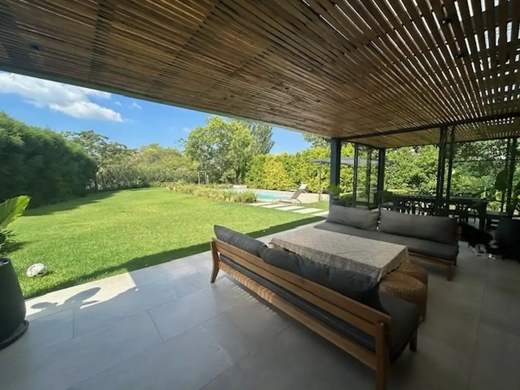 DESCRIPCION EXTERIOR Y DETALLES DE LA CASA: La galería esta hecha a nuevo, impecable y super amplia! con un muy buen espacio para un living exterior y una zona donde la galería se cierra con cerramiento de aluminio negro y vidrio, con puertas ventanas muy amplias, logrando un espacio increíble para poder ser utilizado todo el año, en esta galería esta la mesa para asados, la parrilla con una tromen, una isla con bacha muy práctica, y con un Aire acondicionado frio calor. Del lavadero se sale al lateral donde esta el espacio para colgar la ropa y el lugar de guardado de las bicicletas. El Jardín tiene riego automático, esta parquizado con plantas ya crecidas y con diseño de paisajismo, la pileta es de 9 x 4 mts. con un solárium muy amplio y una pérgola, tiene filtro y bomba. La calefacción es por losa radiante, con caldera y termotanque para el agua caliente.