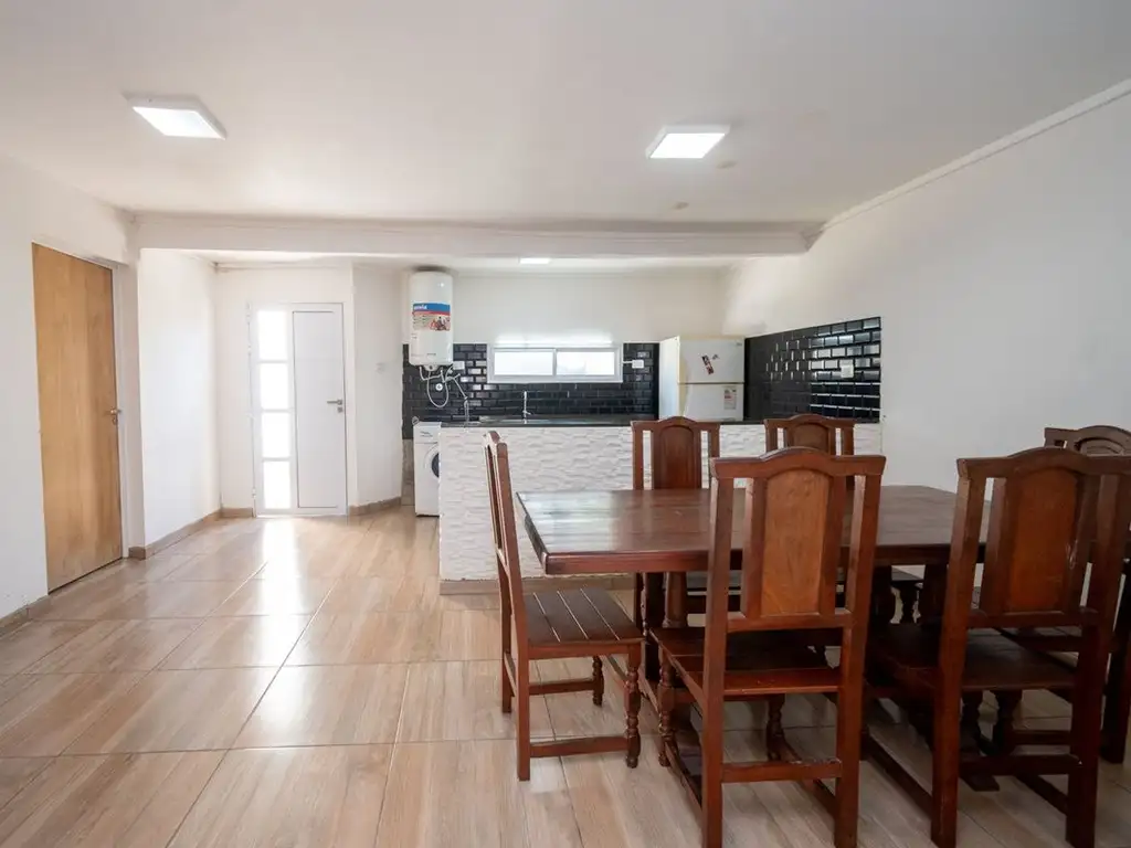 Desde el frente, por pasillo en condominio con la propiedad de frente, accedemos a un primer patio menor. Luego acceso a living - comedor - cocina de gran amplitud, todo semi integrado y con barra desayunadora.