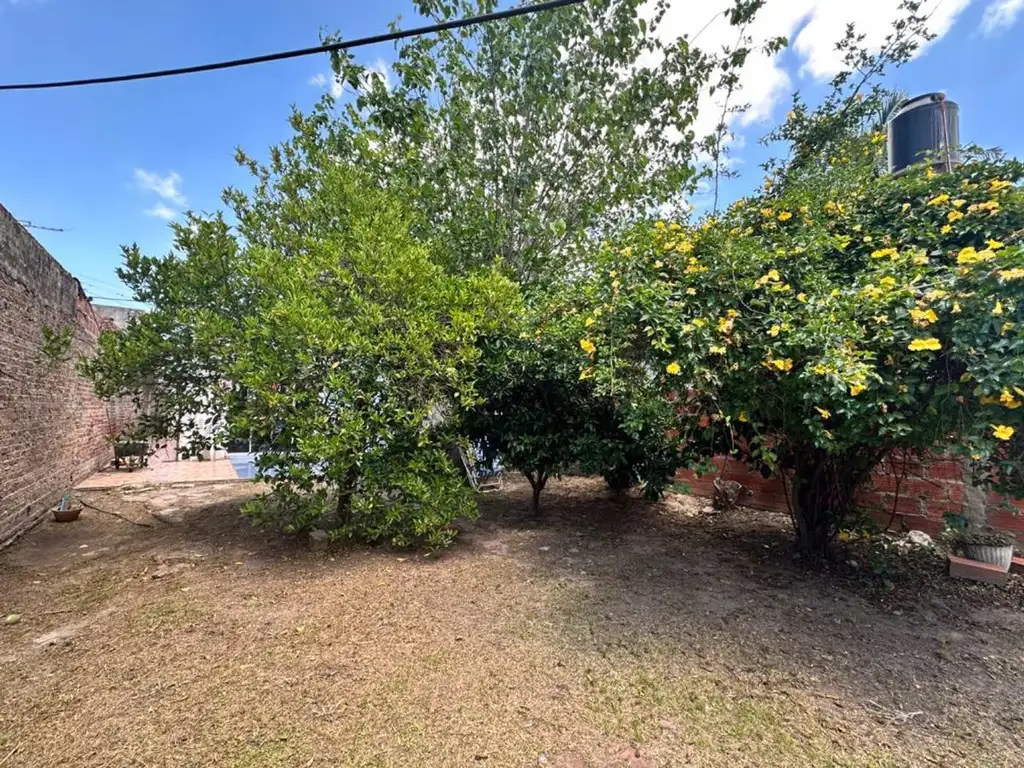 La propiedad se despliega con una construcción al frente que integra garaje y zona de estar, 2 habitaciones, complementada por un patio interior que alberga árboles cítricos, generando un microclima verde y privado. Una construcción adicional en la parte posterior, actualmente utilizada como depósito, amplía las potencialidades del inmueble.