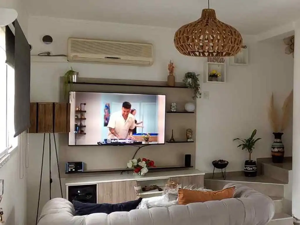 El recorrido comienza en la planta baja, donde un amplio estar-comedor recibe con luminosidad natural y vistas al verde del patio trasero. La cocina, completamente equipada, se integra perfectamente al ambiente social, ofreciendo mesadas amplias y muebles de guardado que simplifican la vida cotidiana. Cuatro aires acondicionados ya instalados garantizan el confort en cualquier estación, mientras las cortinas blackout personalizadas añaden un toque de sofisticación y funcionalidad.