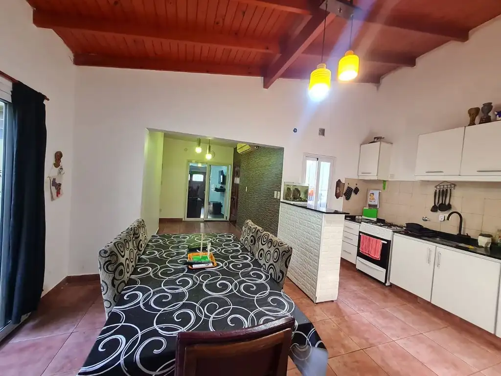 Cocina integrada con mesada, muebles, alacena, cocina a gas, cañerías de agua, gas y luz totalmente nuevas y desayunador con amplio lugar de guardado. Comedor con salida al patio interno que cuenta con el lugar de lavadero, termotanque a gas y escalera de acceso a la terraza que tiene un cuarto de guardado.