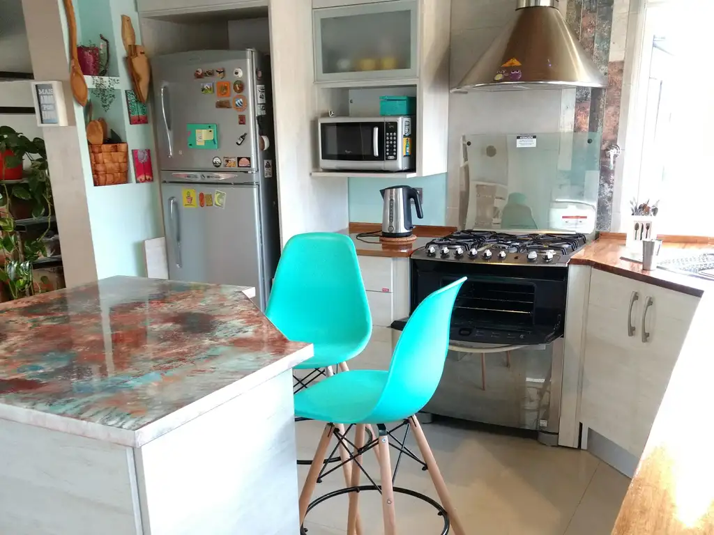 Altillo de guardado muy amplio. Cocina separada, estilo vintage, mesada de madera con recubrimiento de vidrio liquido. Espaciosos y cómodos amoblamientos de cocina, marca Reno. Bacha de cocina Jhonson y grifería FV cromada, todo monocomando. Campana extractora TST.