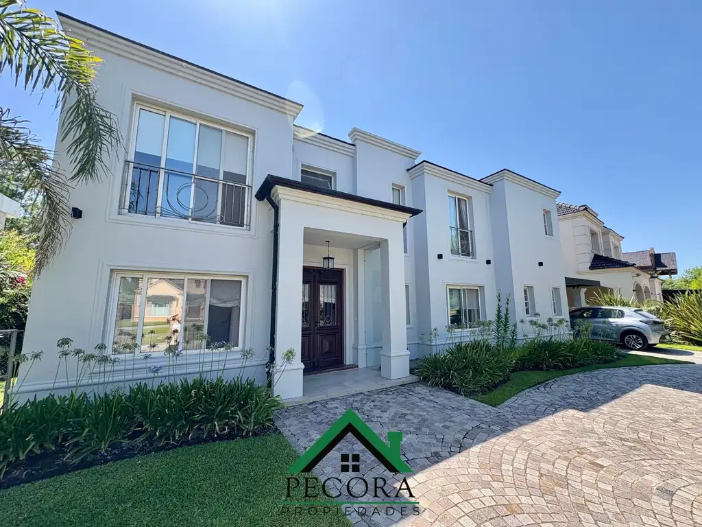 -PLANTA ALTA: Subiendo las escaleras nos encontramos con un palier que nos comunica con 3 dormitorios en suite, a nuestra izquierda tenemos un dormitorio con vista al frente con placar embutido y baño completo con bañera, luego tenemos otro dormitorio con vista hacia el parque y la pileta, baño en suite y vestidor, por ultimo del lado derecho tenemos el dormitorio principal con balcón terraza con vista a la pileta, sauna, baño completo con hidromasaje, ducha y un generoso vestidor.