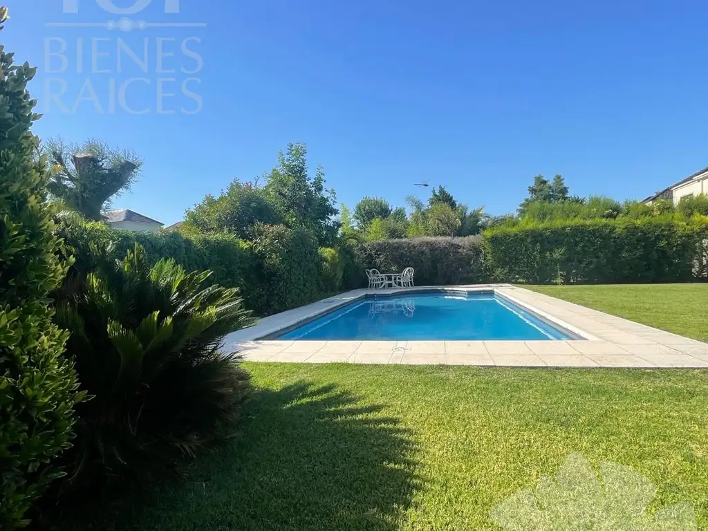 PB: Living comedor con hogar, toilette de recepción, un dormitorio, baño completo, escritorio, funcional cocina, comedor diario y estar con salida a galería cerrada: con parrilla vista al jardín, y pileta de 5 x 10.