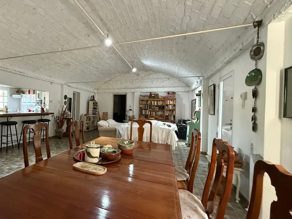 Posee un sector de escritorio o estudio con ventana al frente, 2 dormitorios, espacios de guardado, 2 baños y un sector fuera del casco propiamente de la casa que funciona como salón de usos múltiples (SUM).