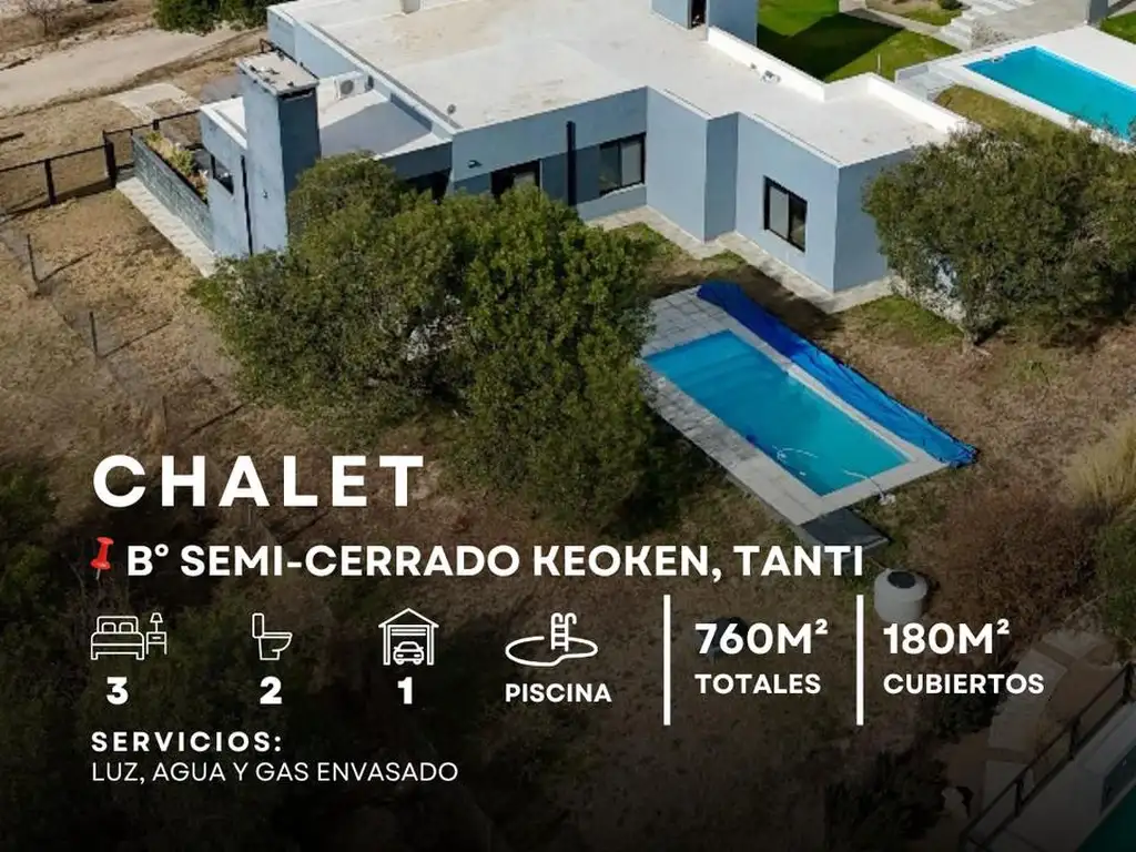 Venta Chalet de 3 Dormitorios Con Pileta En Barrio Semicerrado Keoken, Tanti