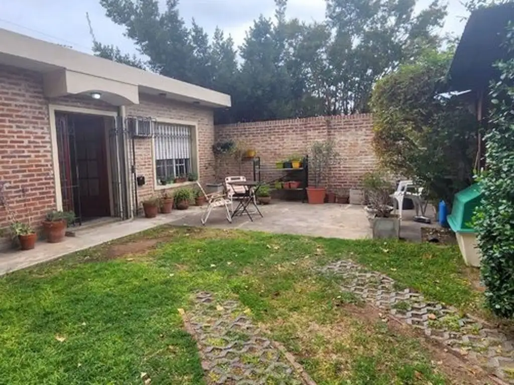 Large double corner lot for this property located in Temperley, a quiet area with low-rise houses. As it has a lot on two streets, we can also access it through the two entrances, the first of which is on Cangallo Street and we find a hall that branches off to one of the bedrooms, a bathroom with a full bathroom and access to the second bedroom with a view of the 100 square meter back. Accessing through the other entrance, we find a generously sized garage door, covered garage, large backyard with grill, and the possibility of building a closed barbecue area. It has its own air space, and has a slab which is suitable for continuing in height since the property is developed on one floor. Entering through this entrance we find the living room, with its almost 25 m2 and large windows, through an arch we enter the kitchen (14 m2) in an L shape since it looks out onto the two streets. Fully equipped with overhead and under-counter cupboards, plus space for diners. Separate laundry room incorporated in the kitchen. The property is prepared with the corresponding wiring to install a central alarm. We look forward to hearing from you to arrange a visit