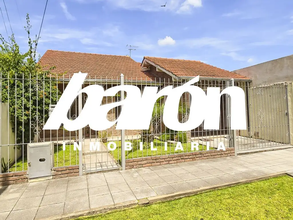 Encantadora casa desarrollada en una sola planta, ubicada en Temperley,, con frente enrejado y portón de acceso vehicular.