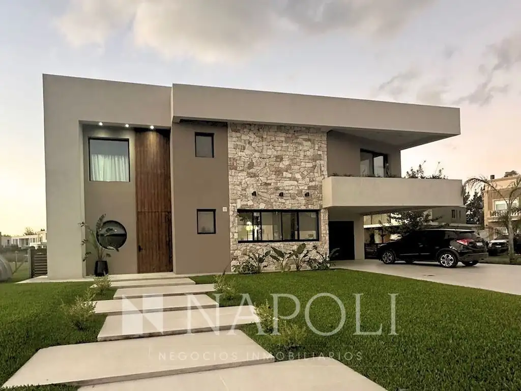 P.B.: Amplio living en doble altura, integrado con el comedor principal. Cocina con isla central con comedor diario. Lavadero. Playroom. Habitación. Baño completo