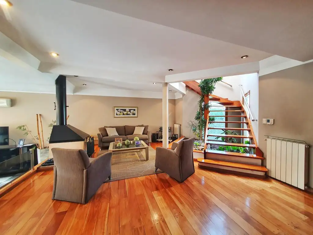 En primer Piso, -Hall de Entrada Accedemos por una pequeña escalera al living, Amplio, con pisos de madera, calefacción por radiador, salamandra y grandes aberturas que permiten el ingreso de luz natural.