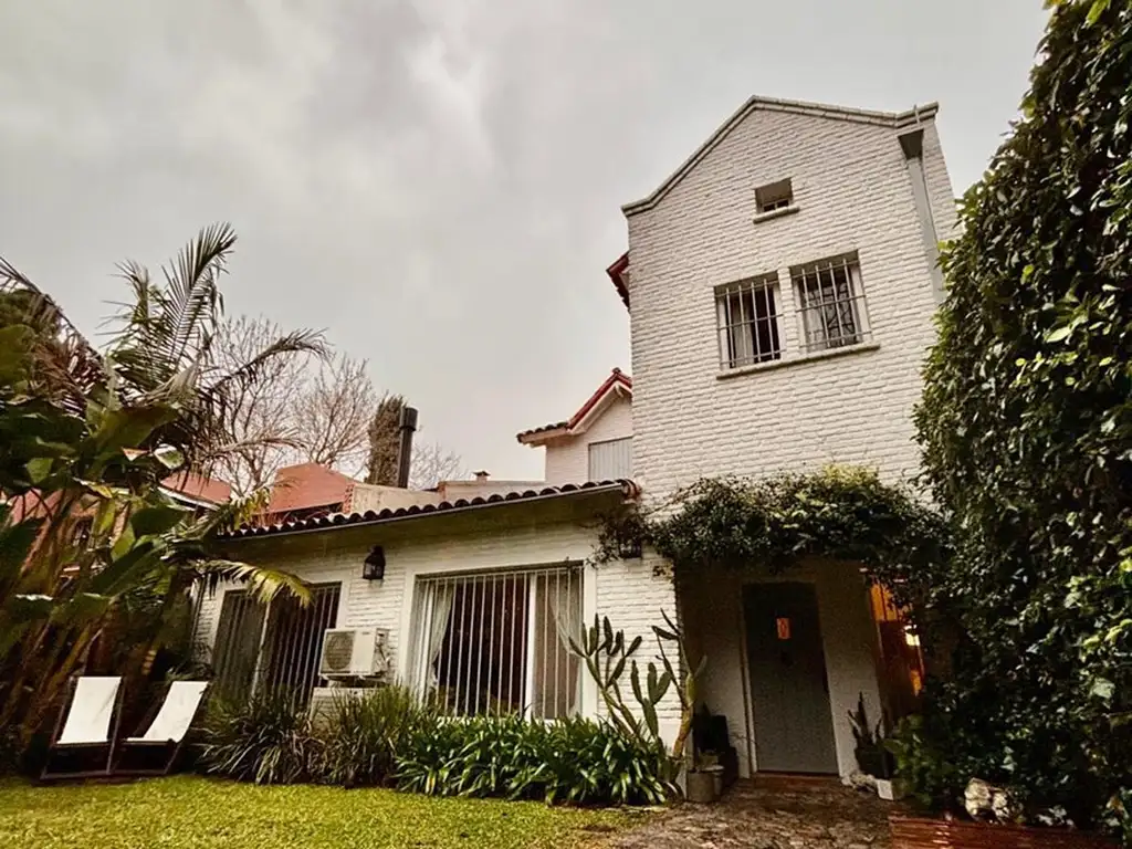 En planta baja amplio hall de entrada con escritorio y escalera de estilo al primer piso. Living comedor con hogar y biblioteca empotrada super canchera que da con vista al jardin del frente. Amplio dormitorio con ventanal con salida al jardin y vista a la piscina (actualmente taller de arte). Baño completo. Impecable cocina con piso ceramico italiano simil madera con gran comedor diario tambien con salida al jardin trasero. Muebles bajo mesada de granito y alacena de diseño. Lavadero separado.