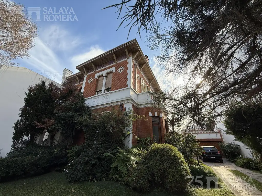 - En planta Baja, Hall de acceso o porche; amplia sala de estar, con techos altos, se destacan en toda la propiedad las molduras originales, en excelente estado. Como asi la amplia luminosidad que invade los ambientes , persianas de madera, en excelente estado, con aberturas, impecables. ; luego encontramos el comedor super amplio tambien; cocina totalmente equipada, con isla y salida a la galeria que es la antesala al imponente jardin con su piscina.