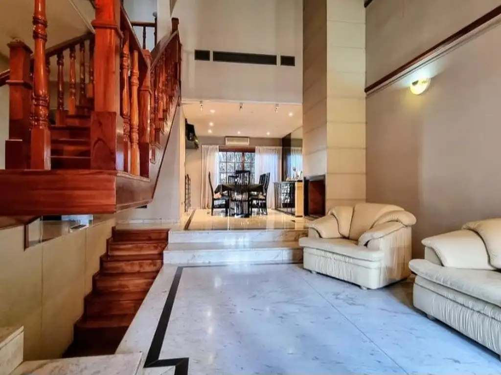 Planta baja: Amplio Living comedor, pisos de mármol , placard de guardado, importante escalera que da acceso al primer piso.