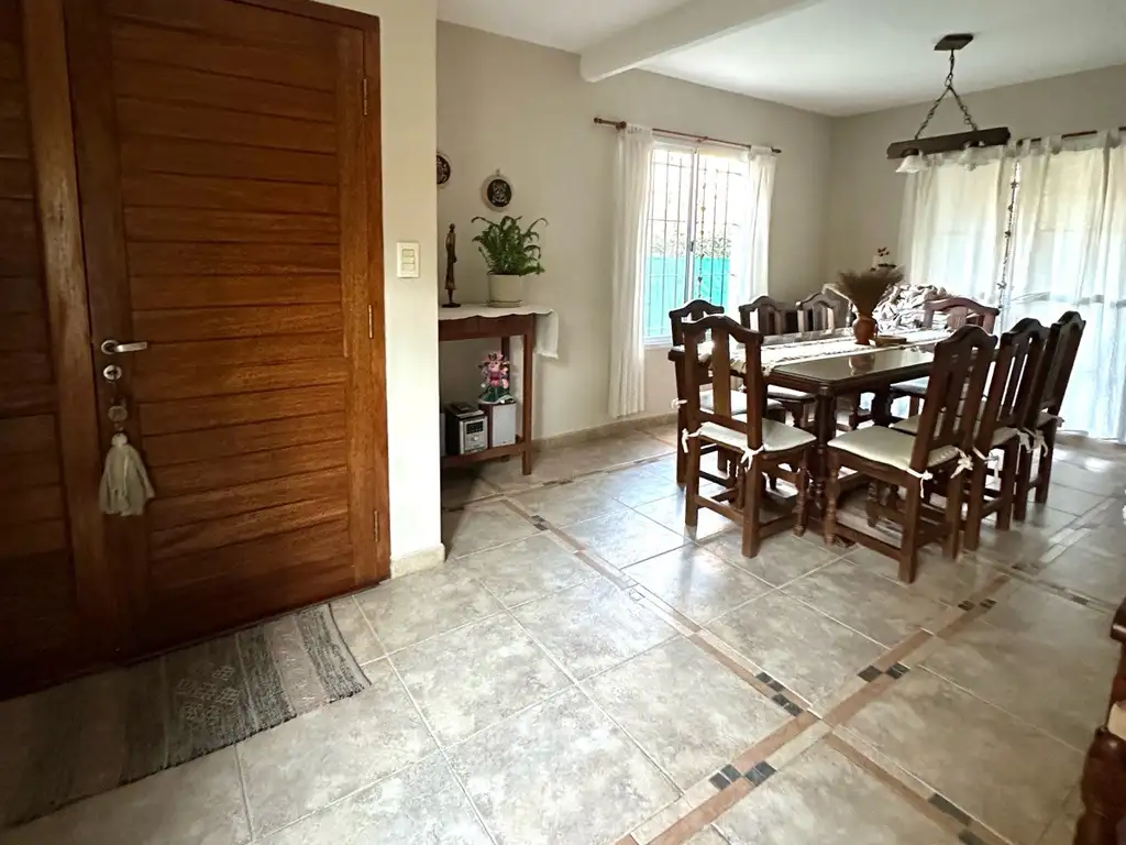 Planta baja : cocina equipada con muebles bajo mesada, living con hogar a leña, 2 comedor, 1 baño completo , 1 dormitorio amplio, lavadero, 2 galerías cubiertas, parrilla y pileta.