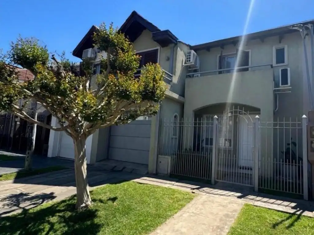 Propiedad tipo dúplex desarrollada en dos plantas, ubicada en una zona tranquila de casas bajas en Berazategui. La fachada combina líneas modernas con detalles clásicos, destacando techos a dos aguas con tejas, barandas de hierro forjado y terminaciones en tonos neutros que aportan sobriedad y elegancia.