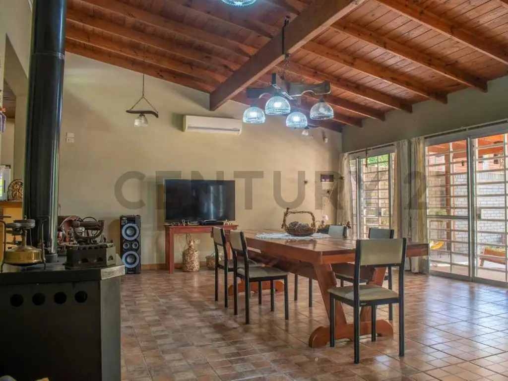 Casa de 2 dormitorios con escritorio, 2 baños completos uno con ante baño, cocina completa separada, parrilla cerrada en el interior de la casa, comedor, living comedor, galería, cuenta con un departamento y un galpón para maquinarias, lavadero con guardado, quincho con pileta, parquizado, agua de pozo, internet fibra óptica , gas tubo, cámara séptica, electricidad.