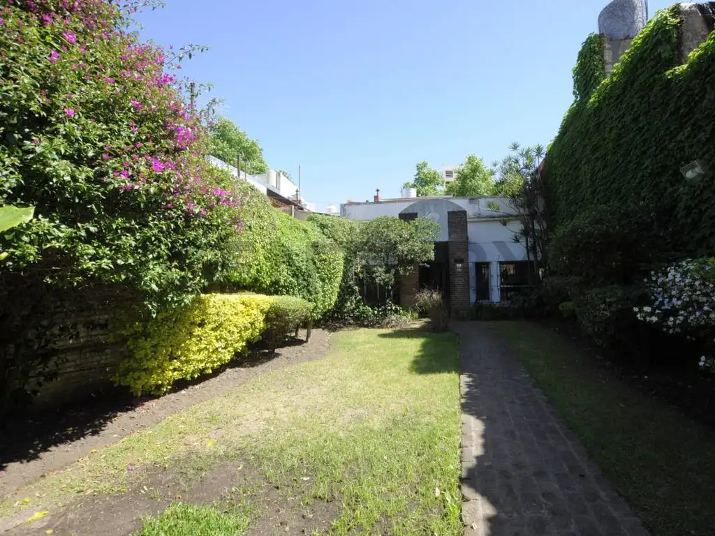 Casa reciclada con muy buen gusto y excelentes materiales. Se desarrolla de la siguiente manera: al ingresar encontramos una cochera cubierta y un amplio jardín al frente con portón de ingreso donde se pueden estacionar varios autos.