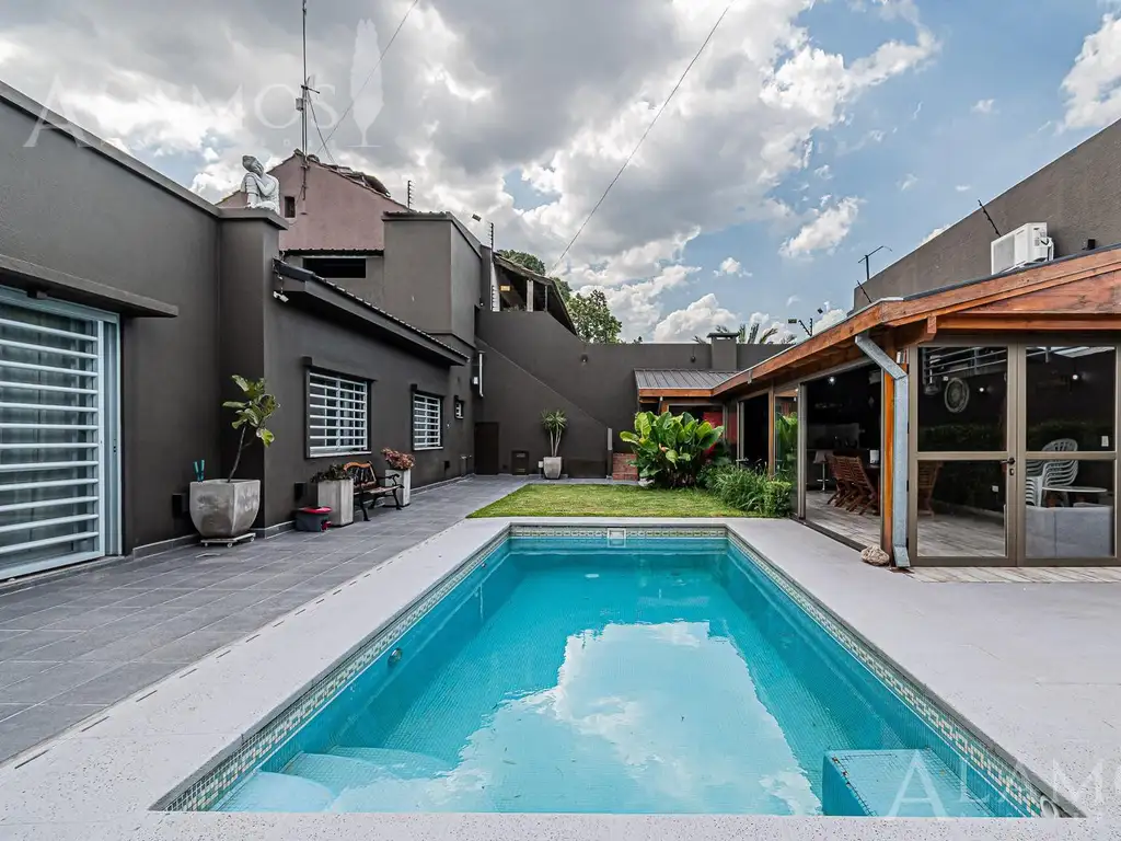 La propiedad se completa con un garage cubierto de amplias dimensiones, con portón automático y espacio de guardado adicional. Un segundo ingreso, también automatizado, conduce a la cochera descubierta, al área de jardín, solárium y pileta, y a un ambiente en planta alta, ideal para desarrollar como dormitorio adicional, playroom o dependencia de servicio.