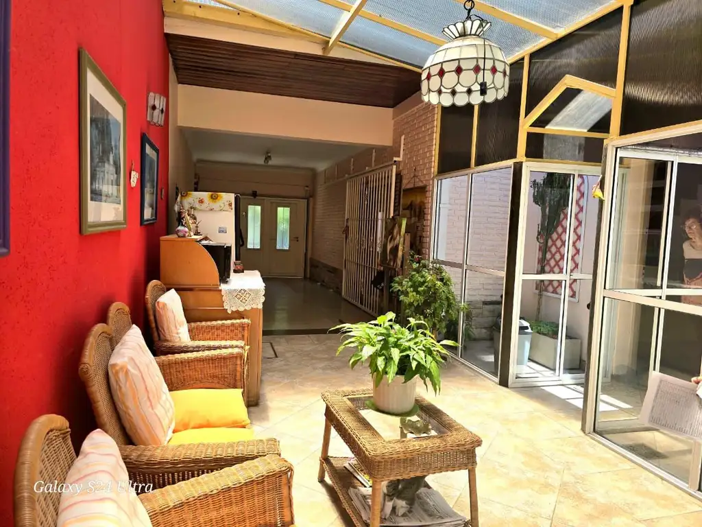 La cocina es amplia y funcional, con ventanas hacia un patio de invierno y escalera de acceso al cuarto de dependencia en el primer nivel. Desde la cocina se accede a un jardín de invierno semicubierto, cerrado con vidrio, con salida lateral hacia el parque trasero.