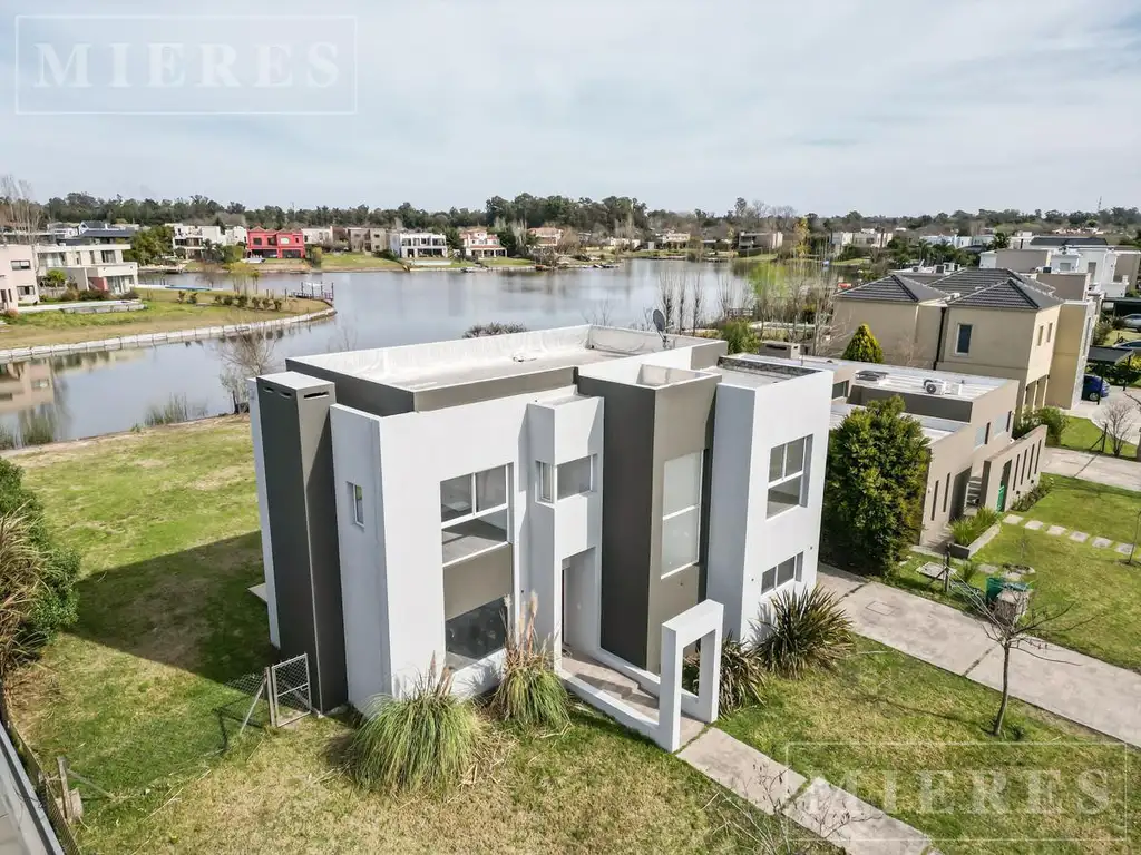 Exterior: Galería con parrilla, muy amplia con salida al jardín de la propiedad, cuyo lote finaliza en la laguna de este barrio. Al lateral de la propiedad se encuentra el área de estacionamiento para dos autos.