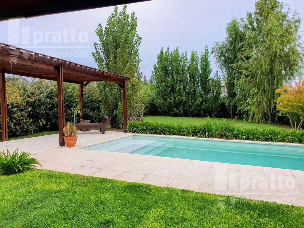 En areas exteriores contamos con entrada para dos autos , uno bajo techo. Galeria y pergola al lado de importante piscina de 4 x 10 mts. Filtro, riego automatico. Jardin totalmente parquizado.
