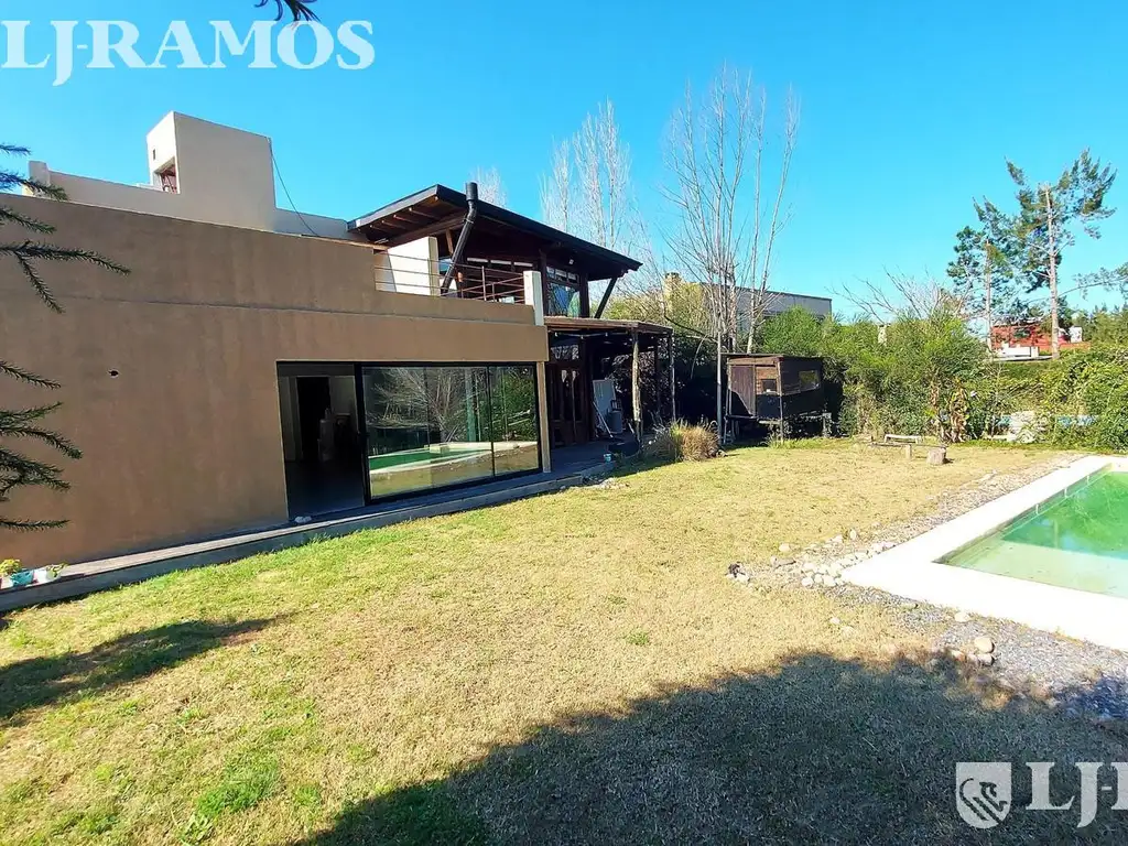 De 210m2 aprox cubiertos + 34m2 aprox semi-cubiertos, sobre muy buen Lote Interno de 800m2 aprox, orientación Nor-Oeste, ya forestado, que da a un gran "pulmón" verde y a una Lagunita (no tiene ningún vecino al fondo del lote).Casa planteada en 2 sectores (comunicados entre sí): 1 sector moderno, construIdo en el año 2020, y otro sector de estilo rústico, tipo cabaña de madera.