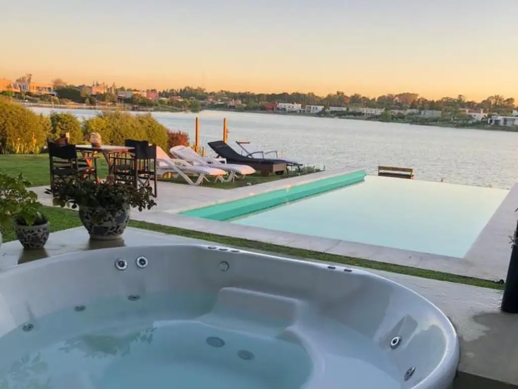Espectacular casa con vista abierta al agua, desarrollada en dos plantas sobre un gran lote de 1.000 m2 en el barrio privado Santa Teresa Villanueva.