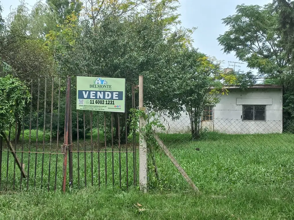 La construcción consiste en una casa - construcción a terminar - de dos ambientes y un baño (nuevo a estrenar), la misma se ubica en la parte posterior del terreno, practicamente en el centro, con árboles y vista de árboles de las propiedades que se ubican alrededor.