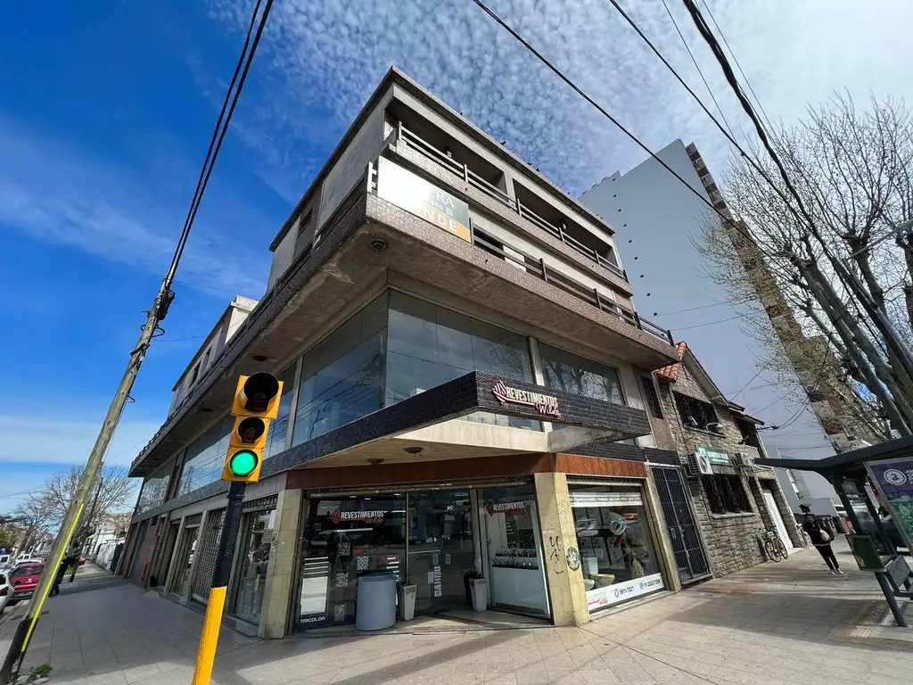 En la planta baja, hay un amplio local comercial en esquina con doble altura, un frente vidriado en ambas plantas y acceso por la esquina. También cuenta con un ascensor montacargas y un altillo con oficinas y un baño.