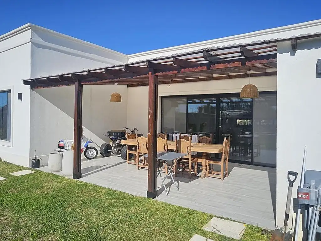 Desarrollada en una sola planta, esta casa cuenta con un living comedor grande que da a una amplia galería con parrilla y salida al jardín, hoy todo parquizado con grama bahiana.