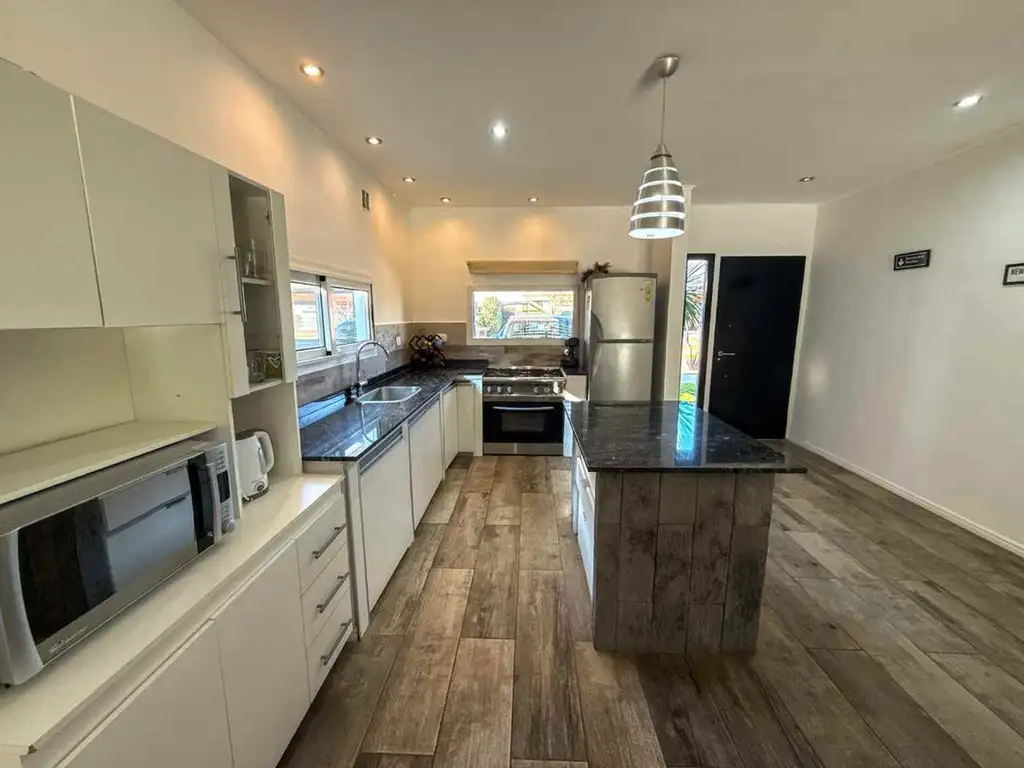 Al ingresar, la cocina con isla se integra armoniosamente al living comedor, creando un ambiente acogedor y funcional. Desde allí, se accede al jardín, donde podrás disfrutar de agradables momentos en familia o con amigos, junto a la pileta y la galería con parrilla.