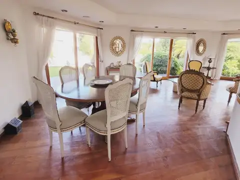 Los algarrobos 1287 san isidro chico casa desarrollada en dos plantas, con muy buena distribución, ambientes amplios y una excelente integración con el jardín. Ubicada dentro del barrio san isidro chico, en lote central. Al ingresar, un hall de recepción, un escritorio al frente y a una gran recepción apaisada hacia el jardín, compuesta por amplio living con chimenea y ventanales que conectan directamente con la galería, vistas abiertas y muy buena entrada de luz natural. El comedor, de grandes dimensiones, se vincula a la galería mediante puertas ventanas, la cual se encuentra actualizada, con excelentes muebles johnson bajo mesada y alacenas, barra desayunadora y muy buen lugar de guardado. Lavadero con salida directa, dependencia de servicio y despensa bajo escalera. En este nivel también se encuentra un playroom o con salida a un patio que se conecta al jardin y un baño completo. (Puede usarse como dormitorio en pb) en la planta alta en la planta alta, el dormitorio principal, muy luminoso y orientado al jardín, cuenta con vestidor y baño completo. Se suman dos amplios dormitorios en suite, uno con vestidor y otro con placard, ambos con baño con bañadera. Además, hay otro dormitorio con placard y baño completo con ducha, y un ambiente adicional que puede funcionar como escritorio o quinto dormitorio. Exterior: jardín orientado al este, totalmente parquizado y con muy buena privacidad. Galería con espacio para living y comedor exterior - parrilla - pileta en un sector muy cómodo del jardín. Detalles técnicos: los baños fueron actualizados hace 2 años, la cocina fue actualizada hace 10 años. Pisos de madera hidro laqueada; calefacción por piso radiante; caldera y calefón (x2); carpinterías con dvh. Se deja aclarado que las informaciones contenidas en esta publicación podrían haber sufrido alguna modificación o corrección entre su publicación y el tiempo de su visualización.