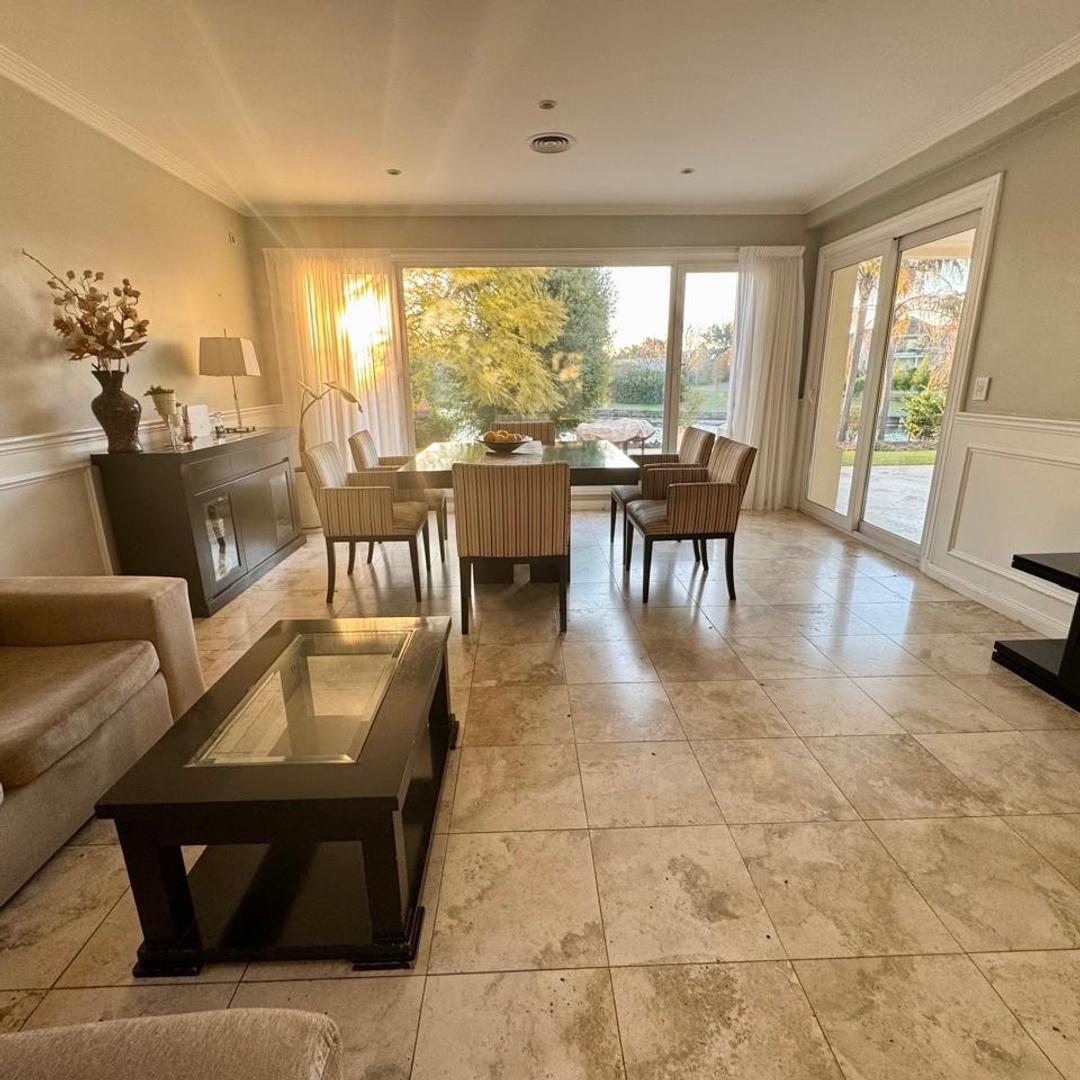 Impecable casa de categoría de 378 m2 cubiertos, 420 m2 totales al lago central. Cuenta con 4 dormitorios. Planta baja: cuenta con un amplio hall de entrada, gran living comedor con chimenea, pisos de mármol. Cocina con mesadas de silestone blanco, lavadero, dependencia con baño y un cuarto de guardado. Baño completo que puede ser utilizado como toilette o en suite para la habitación de huéspedes, o escritorio en planta baja. Ascensor. Exterior: amplia galería con parrilla, baño de pileta. Pileta con borde infinito. Muelle. Riego automático. Planta alta: master suite con gran vestidor y baño compartimentado, vista al lago, 2 amplias semisuites y un gran playroom insonorizado. Amplio balcón al lago. La pb tiene 3,60 m de altura y la pa tiene 3,30 mts altura. Toda la construcción es con yesería, molduras y buñas. Detalles de calidad en la construcción. Cerramientos alemanes de doble vidrio y pvc. Calefacción por losa radiante. Todas las medidas son aproximadas al solo efecto orientativo. Las medidas exactas serán las que surjan del título de propiedad. Las fotografías y videos no son contractuales. No se encuentran incluidos en el precio publicado los equipos de aire acondicionado, electrodomésticos, artefactos de iluminación ni accesorios que pudieran estar mencionados en la descripción o ilustrados en fotografías. Únicamente quedarán incluidos en el precio aquellos ítems que surjan de la reserva a conformar entre las partes. Si hubiera valores de expensas y/o impuestos detallados, los mismos son aproximados y sujetos a modificación. Ley 5115 de caba: excepto que en la descripción de la propiedad se indique lo contrario, el edificio puede no contar con rampa para personas con movilidad reducida, y no ser accesible para personas con discapacidades físicas. Premier real estate s.A. Matrículas m. Annoni cucicba 6771 - p. Kaminsky cucicba 7753/cmcpsi 6665. Teléfonos de contacto / . Todas las propiedades que figuran en esta publicación se encuentran a cargo de los profesionales matriculados de premier real estate s.A. Por lo que la intermediación y conclusión de las operaciones serán llevadas exclusivamente por ellos. En cumplimiento de la ley 10.973 de la provincia de buenos aires, ley nacional 25.028, ley nacional 20.266, ley 22.802 de lealtad comercial, ley 24.240 de defensa al consumidor, las normas del código civil y comercial de la nación y constitucionales, los asesores o agentes no ejercen el corretaje inmobiliario. Todas las operaciones inmobiliarias son objeto de intermediación y conclusión por parte de los martilleros y corredores colegiados. Las reservas se toman exclusivamente en la inmobiliaria con los matriculados m. Annoni cucicba 6771 - p. Kaminsky cucicba 7753/cmcpsi 6665.
