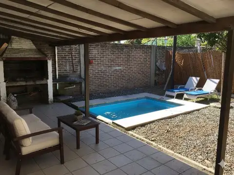 incluye el siguiente amoblamiento: mesa de madera y bancos de la galería, sillón de la galería, reposera de madera, hamaca paraguaya, mueble de arrime, barra de madera, cómoda en dormitorio principal.