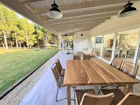 - - No apto mascotas - - - - alquiler mínimo por quincena (no semana) disponibilidad: 2da q diciembre 1ra q enero 2da q enero 1ra q febrero - alquiler temporal hermosa casa estilo californiania 5 ambientes como nueva, totalmente equipada prácticamente sin uso. - Casa desarrollada en una sola planta (ideal para niños y personas mayores) - mantenida y cuidada únicamente por sus dueños (no destinada a inversión ni alquileres continuos) *ubicación* -barrio privado ubicado a 10 minutos en auto desde la entrada/salida de pinamar y a 5 minutos desde la frontera de pinamar norte (por playa) -ubicación estratégica para toda la familia (chicos y adultos), a pocos metros del acceso sur, del centro comercial y a 20 metros de la estación de transfer interno del barrio el cual permite trasladarse de manera gratuita a los diferentes barrios y puntos de interés (club house, gimnasio, canchas deportivas, paddle, tennis, golf, paradores de playa, etc). -A 4 minutos de la bajada a la playa. -Empresa de seguridad a 100 metros. *Lote & orientación* -terreno totalmente plano con doble salida (muy cómodo para la familia). -Cerco perimetral. Parquizado en su totalidad, super iluminado por la noche. -Sol de mañana hasta avanzadas horas de la tarde (parque trasero) -sol desde el mediodía hasta el atardecer (fachada y jardín delantero) -ambientes super luminosos durante todo el día *calefacción* - aventanamientos dvh de pvc (doble vidrio hermético de policloruro las cuales no transmite el frío ni el calor) -gas natural instalado, no tienen que alquilar garrafas (son costosas y se consumen rápidamente) -calefacción por radiadores en todos los ambientes -aires acondicionados nuevos (frío/calor) en todos los ambientes además de ventiladores en dormitorios. *Tecnología* -excelente conexión a wifi en todos los ambientes -tvs con acceso a flow, netflix y apps en todos los ambientes *ambientes* -mosquitero en todos los ambientes. -Toilette de recepción. -Cocina totalmente equipada, prácticamente sin uso (vajilla, utensilios y artefactos eléctricos) -lavadero independiente con bacha y lavarropas. -Dormitorio principal en suite (apartado de los otros 3 dormitorios, lo que le da mayor privacidad). Cama matrimonial king. -Baño completo compartimentado. Radiador-calefactor para toallas. -Segundo dormitorio con cama matrimonial queen. -Tercer dormitorio con 2 camas cuchetas. -Cuatro dormitorio con 2 camas individuales. -Baño completo. Radiador-calefactor para toallas. *Galería* -semicubierto corrido, sector de parrilla con mesada y bacha agua fría/caliente. -Gran cantidad de tomacorrientes. -Instalación de ducha agua fría/caliente en el exterior -hermosa vista abierta 180° a todo el parque - mesa para 8 personas + juego de living para exterior - - no apto mascotas - -