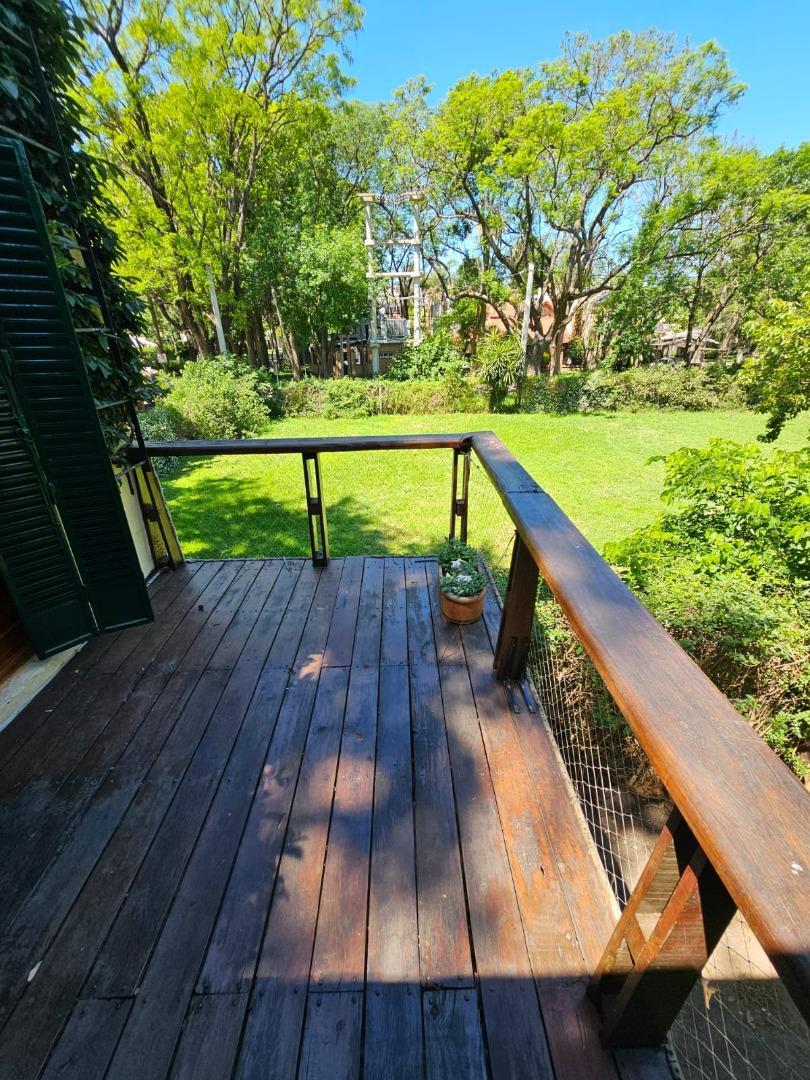 el barrio ofrece un microclima único, con veredas cubiertas de césped y arboleda añosa que transportan tus sentidos lejos de la ciudad. El terreno no solo alberga la construcción actual, sino que permite proyectar:
