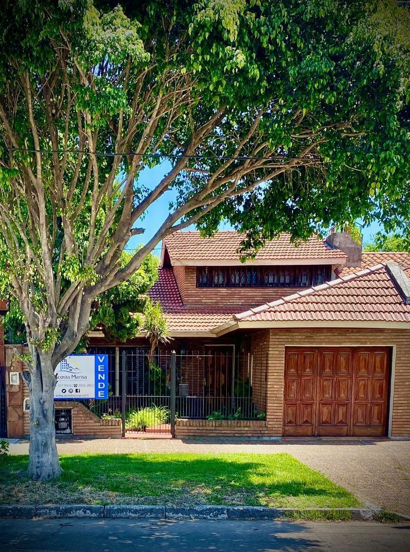Excelente chalet con 3 dorm, 2 cocheras, fondo y pileta! Chalet estilo alpino con entrada de auto y garage para 2 autos, retiro de frente con rejas, portón automático y jardín. Living comedor en desnivel con balcón al frente, gran ambiente de cocina comedor diario con muebles bajo y sobre mesada en pino tea, bacha doble, horno empotrado y anafe, marmol granito gris en mesada con vista al parque con patio, pileta y jardin. Distribuidor en el living-comedor hacia baño principal de estilo romano; dormitorio principal con piso en madera tarugada, balcon al frente, placard y baño en suite; segundo dormitorio con piso en madera tarugada, aire acondicionado, vista al parque y baulera; escalera a planta alta con estar distribuidor, dormitorio con piso ceramico, aire acondicionado y vista al frente; baño completo con bañera; amplio playroom con balconeo al living. En desnivel de planta baja, garage cubierto para 2 autos con placards; lavadero o area de servicios; cuarto auxiliar o deposito con toilette e ingreso independiente. Terraza accesible. Calefacción central por radiadores con caldera, 4 aires acondicionados en total, ventanas y postigos en madera con vidrio repartido. Detalles de herreria artistica en interiores, de gran categoria. Muy buen estado! Posible apta credito bancario en comun con inmobiliaria colega se puede aceptar inmueble en la zona de menor valor y menor tamaño acepta permuta servicios: cloacas, gas otros servicios: parque, balcón terraza, jardín delantero